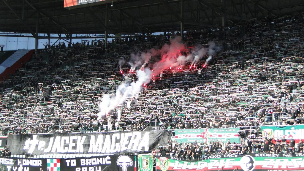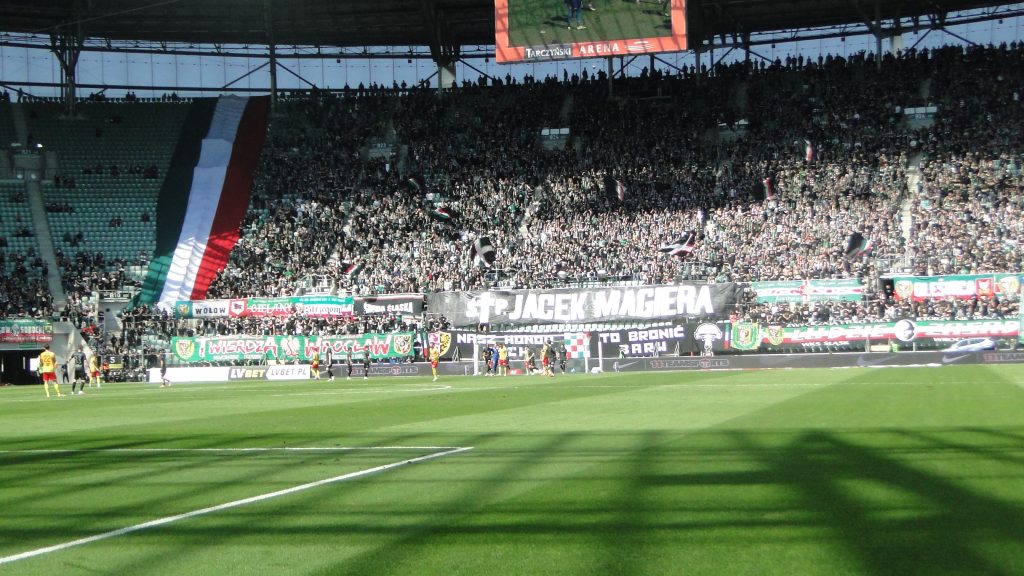 Na trybunach rozbrzmiewał głośny doping. Na meczu pojawiło 17 282 kibiców gospodarzy, natomiast po stronie gości pojawiła się skromna grupa około 20-30 osób dopingujących Znicza Pruszków, pomimo skromnej liczby kibice przyjezdnych mieli ze sobą flagi, którymi machali i wspierali swoich zawodników.