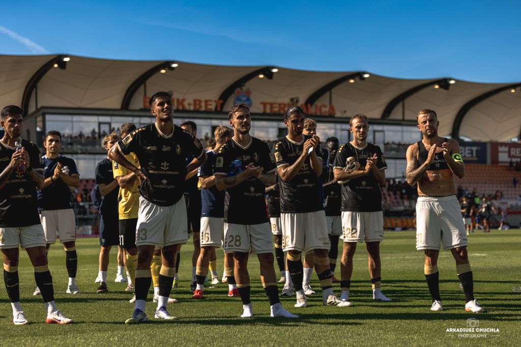 W niedzielne południe na boisku w Termalice zmierzyły się dwa zespoły, które w 2026 roku wciąż nie odniosły zwycięstwa w Ekstraklasie. Ekipy Bruk-Bet Termalica i Radomiak Radom — bo o nich mowa — rozpoczęły granie w marcu. W pierwszej połowie bramkarze kompletnie zamurowali bramkę. Szczególnie Adrian Chovan, który kilkukrotnie ratował remis gospodarzom broniąc solidne uderzenia m.in Capemba oraz Mauridesa. Kilka minut po przerwie sytuacja nieco uległa zmianie i drużyny po blisko godzinie zmagań zaczęły trafiać. W 65. minucie błąd Filipa Majchrowicza bezlitośnie wykorzystał Rafał Kurzawa., a zaledwie trzy minuty później padła druga i ostatnia bramka. Odpowiedzialni za nią są dwaj zmiennicy. Do remisu doprowadził Abdoul Tapsoba, który dobrze poprowadził akcję lewą flanką, dzięki solidnemu zagraniu Zie Ouattary. Reszta meczu to dalsza, wzajemna wymiana akcji i strzałów, z którymi bramkarze nie mieli problemu.